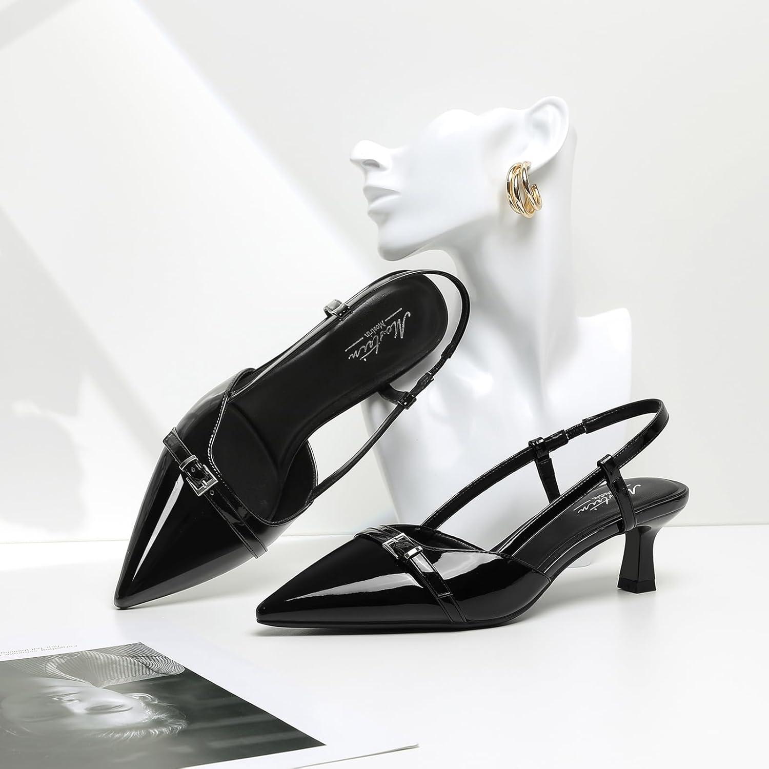 imageMostrin Kitten Heels for Women Low Heel Closed Pointed Toe Slingback Pumps Buckle Strap Dress Shoes for Daily Working WeddingBlack 04