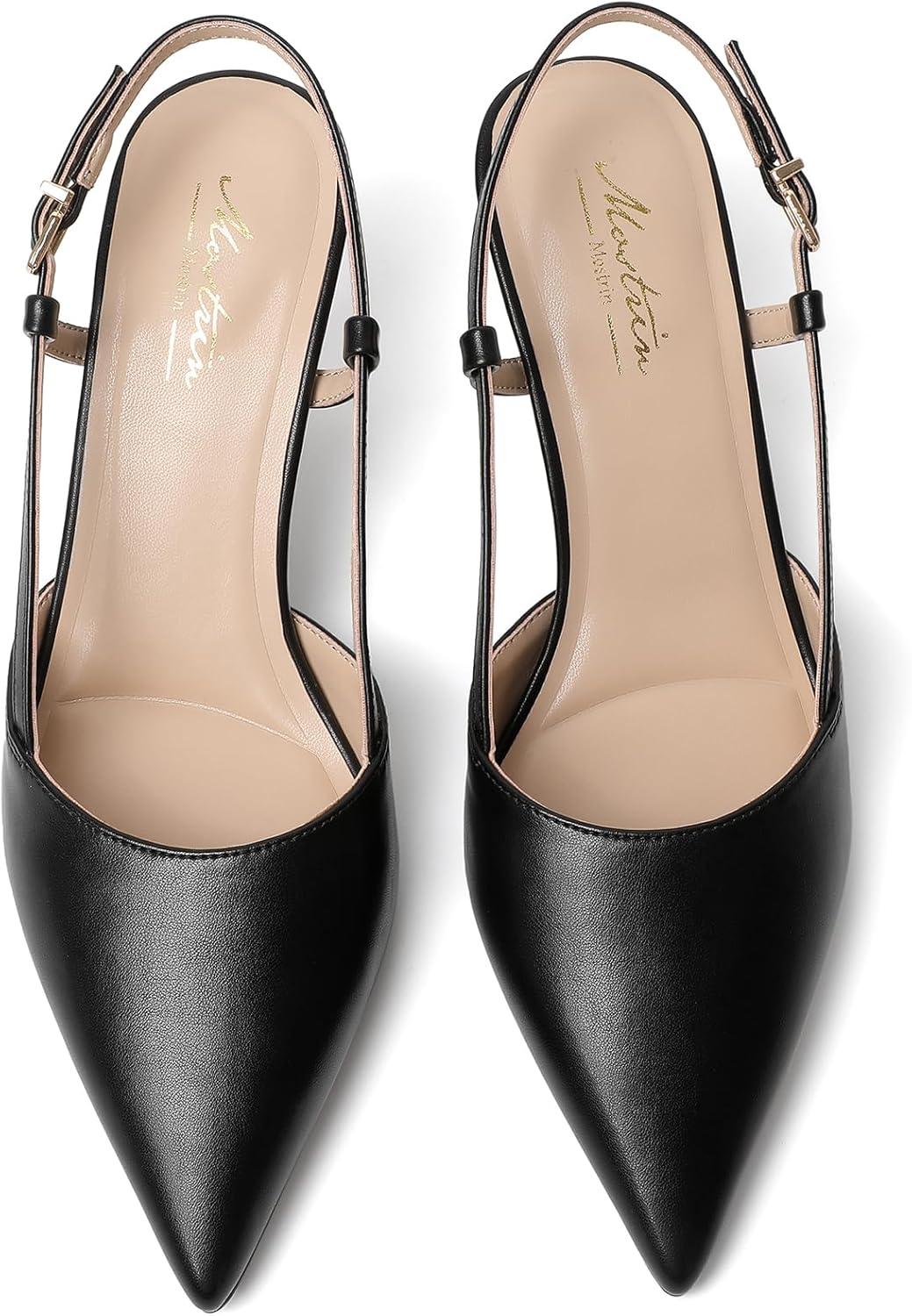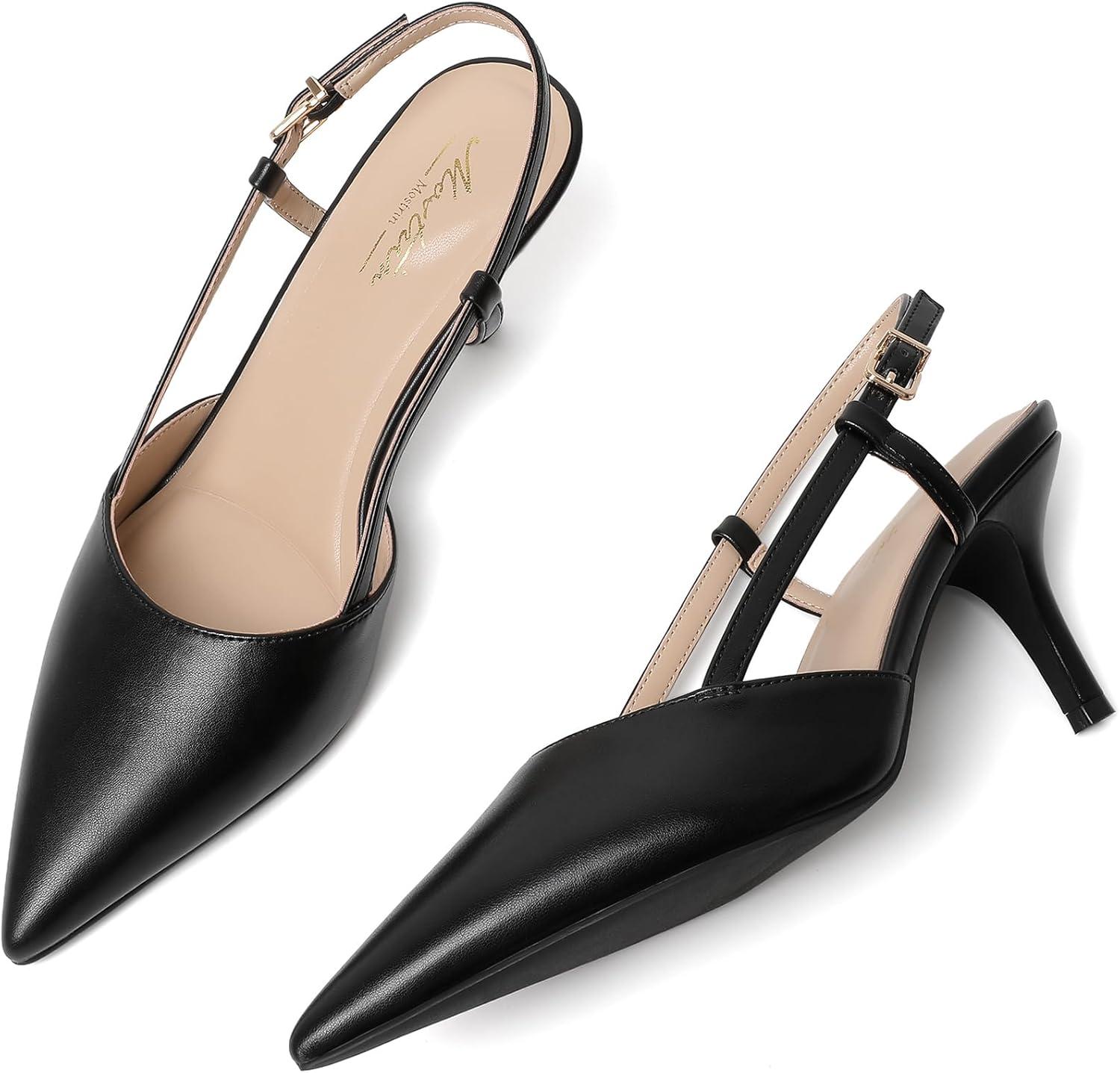 Mostrin Kitten Heels for Women Pointed Closed Toe Stilettos Slingback Low Heel Bow Pumps Dress Shoes for Daily Party Wedding(Black#01)