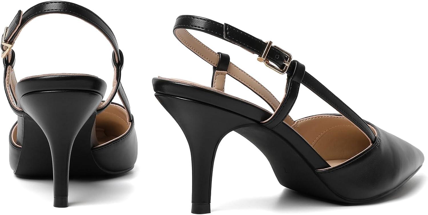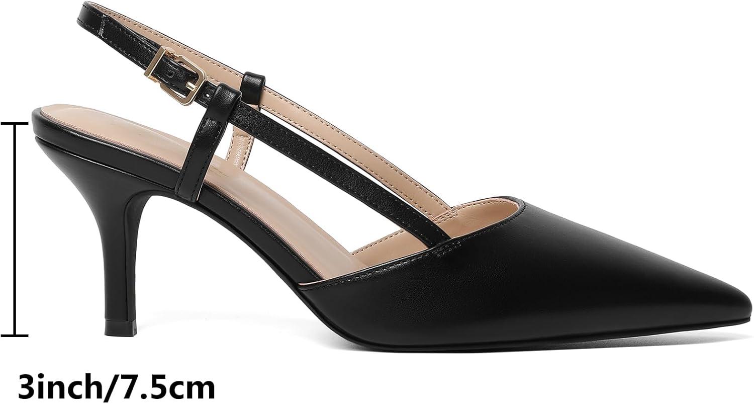 Mostrin Kitten Heels for Women Pointed Closed Toe Stilettos Slingback Low Heel Bow Pumps Dress Shoes for Daily Party Wedding(Black Pu#01)