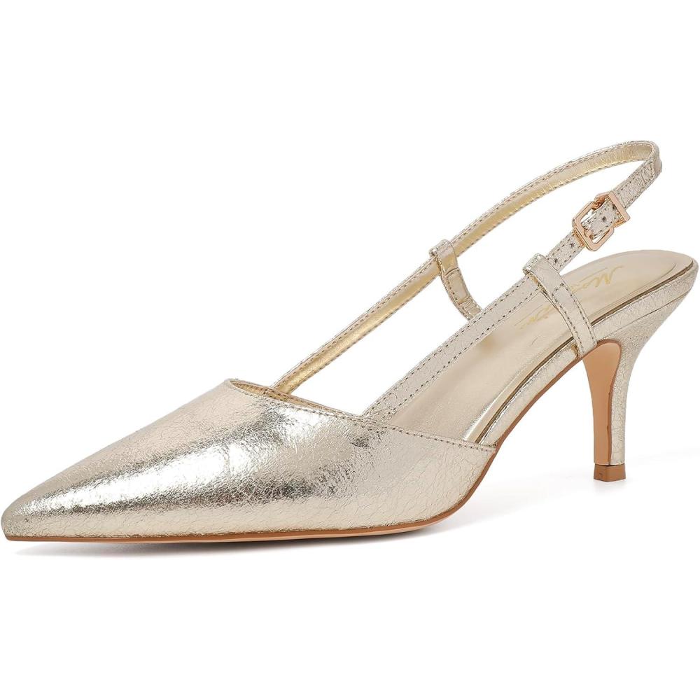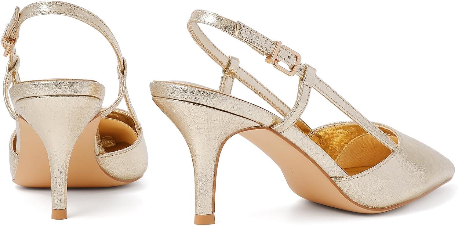 imageMostrin Kitten Heels for Women Pointed Closed Toe Stilettos Slingback Low Heel Bow Pumps Dress Shoes for Daily Party WeddingGold01