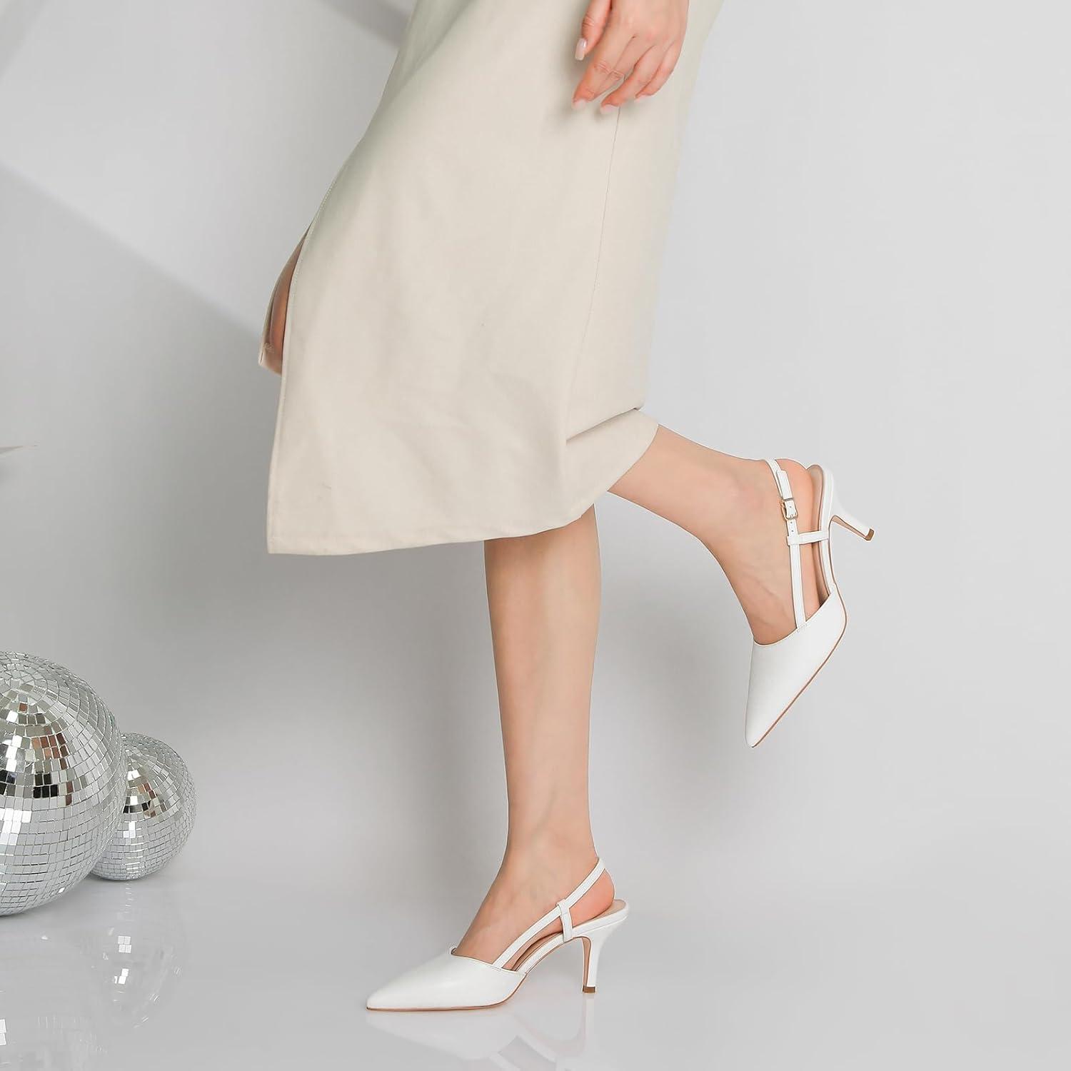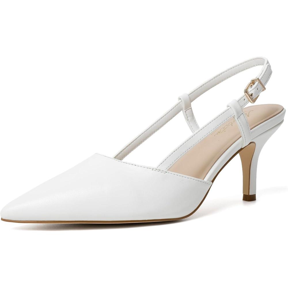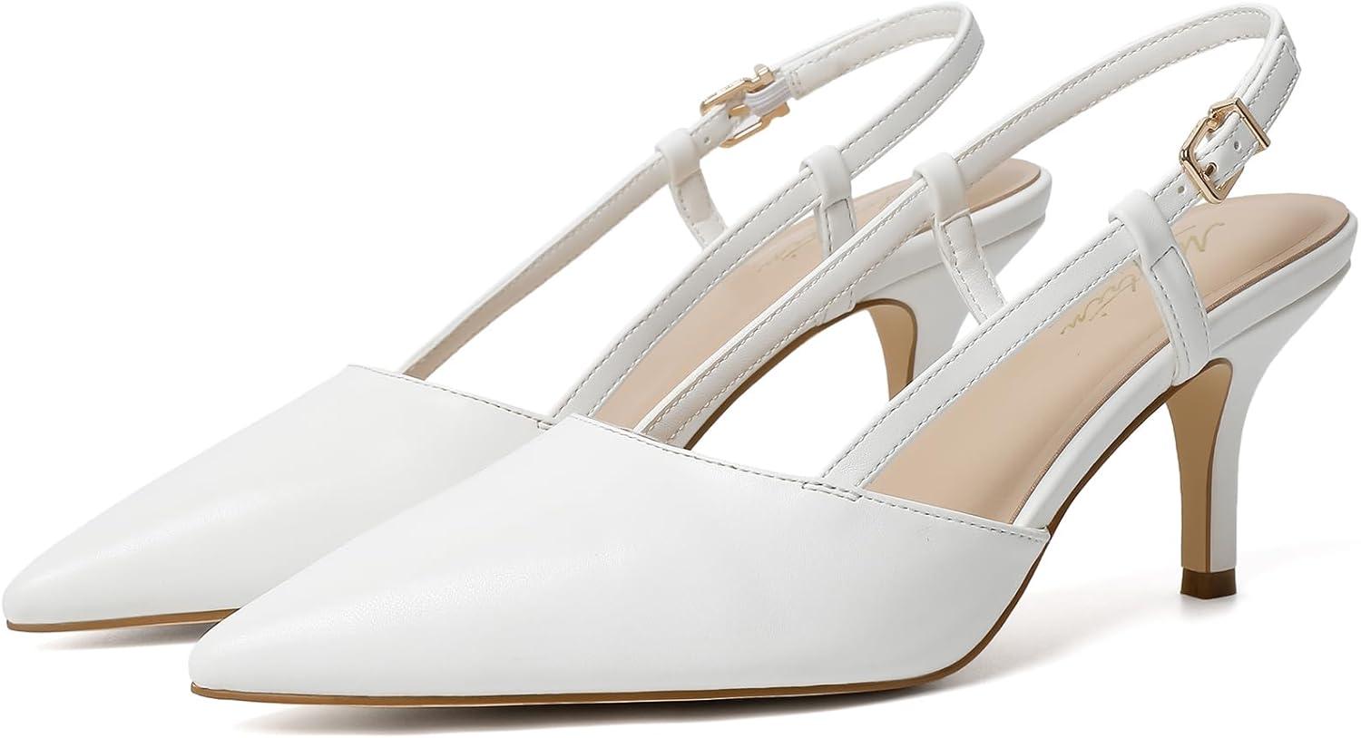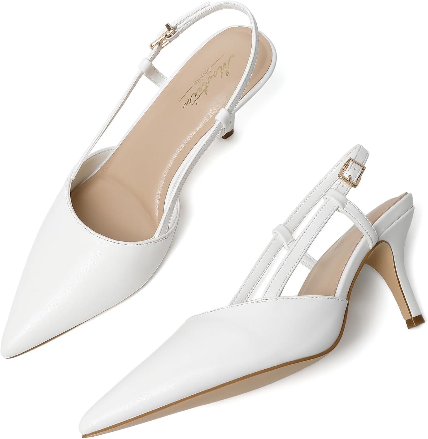 Score big savings on Mostrin Kitten Heels for Women Pointed Closed Toe Stilettos Slingback Low Heel Bow Pumps Dress Shoes for Daily Party Wedding(White#01) during our back-to-school sale. Limited quantities available.