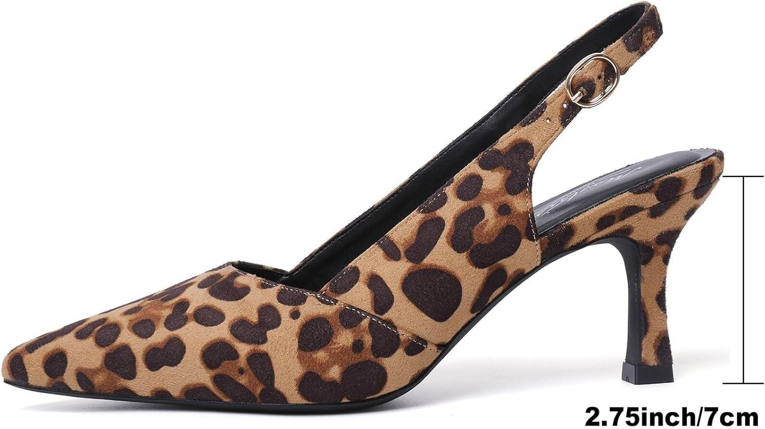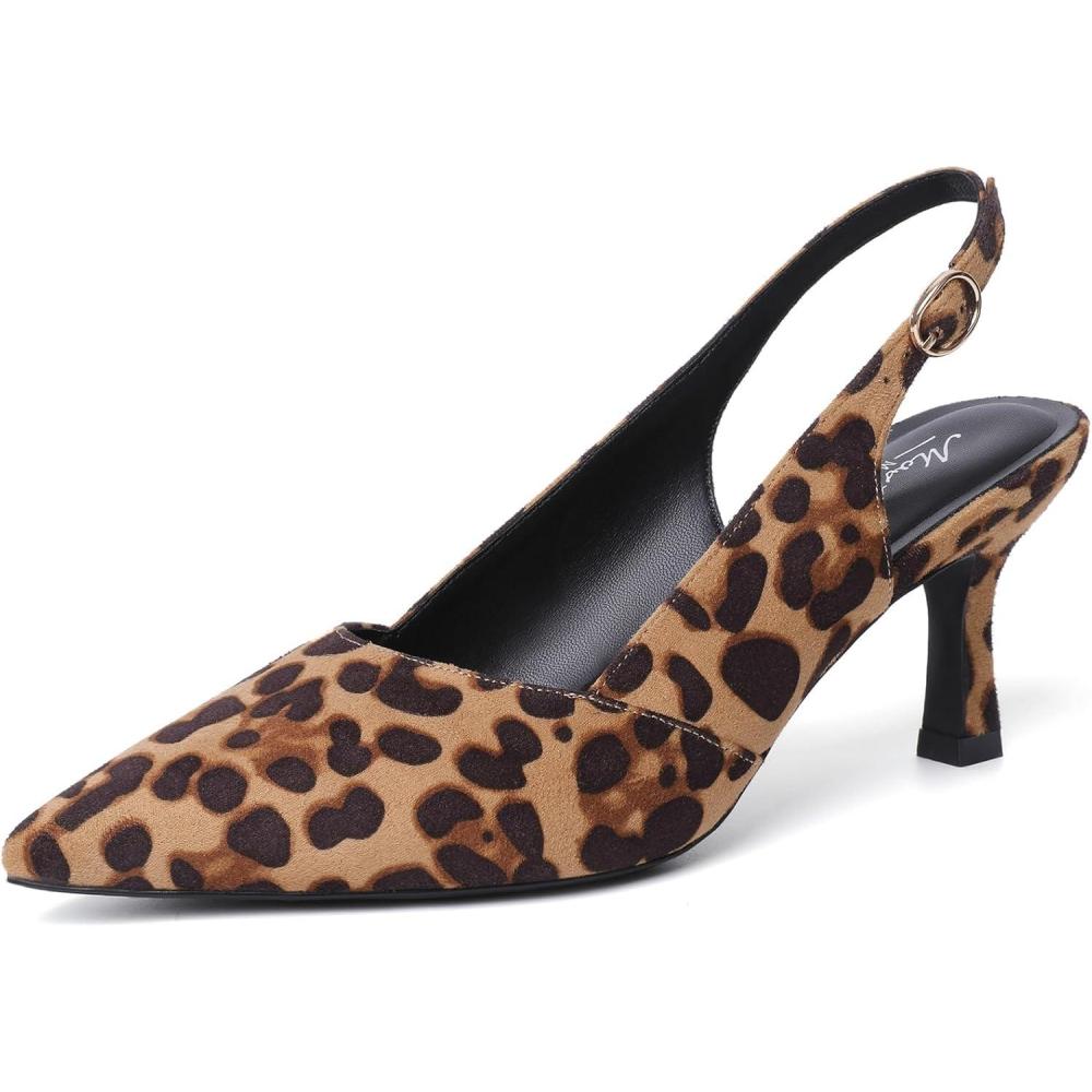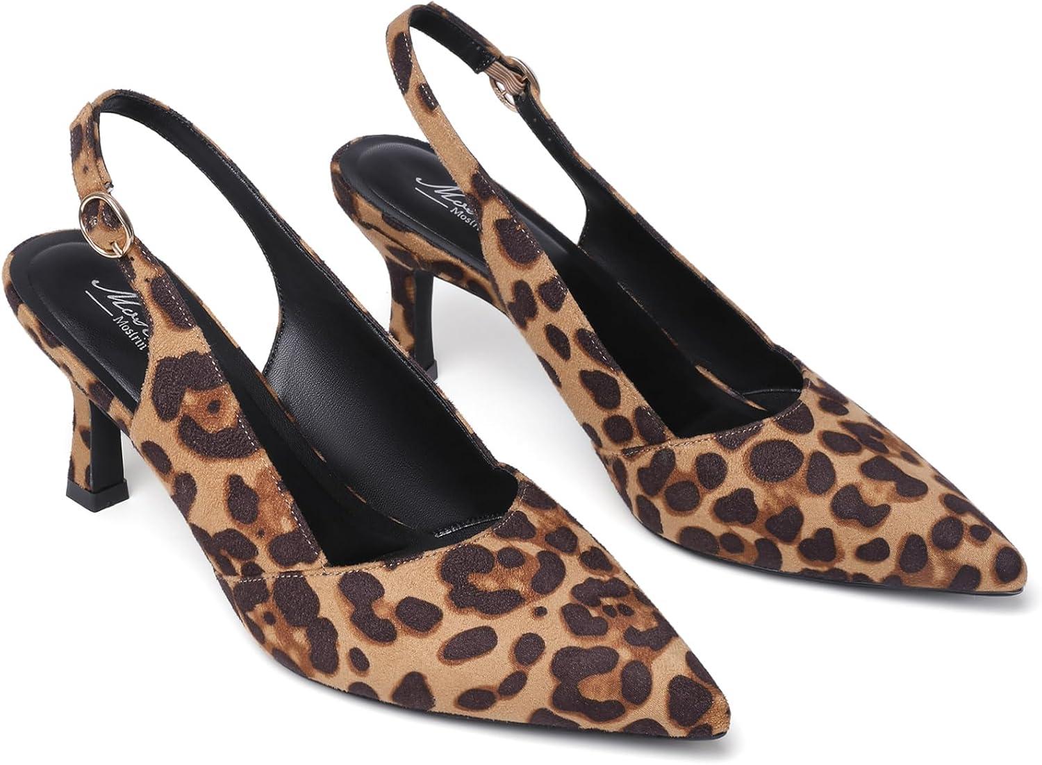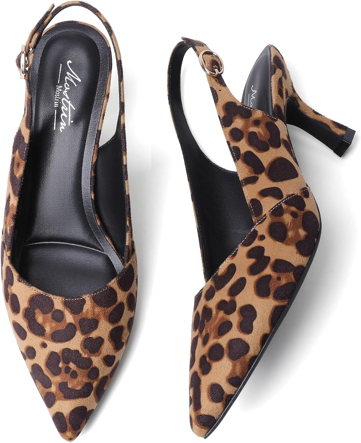 Mostrin Kitten Heels for Women Slingback Pointed Closed Toe Heels Women’s Pumps Shoes for Wedding, Party, Commuting(Leopard Print)