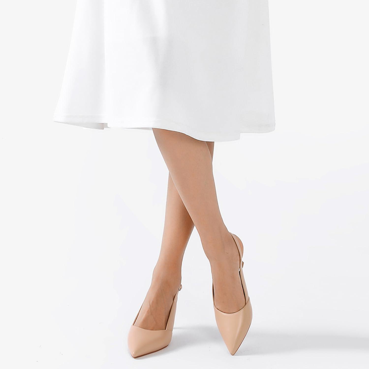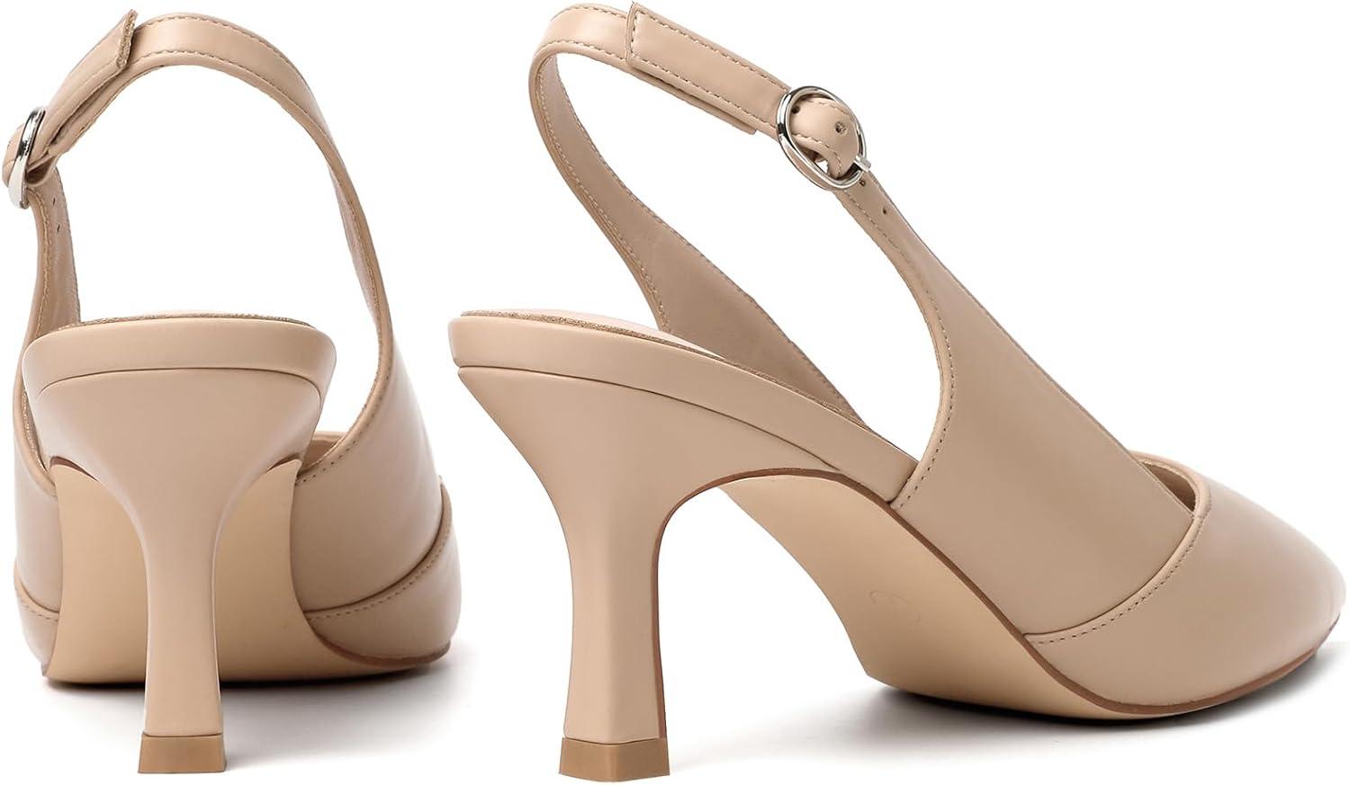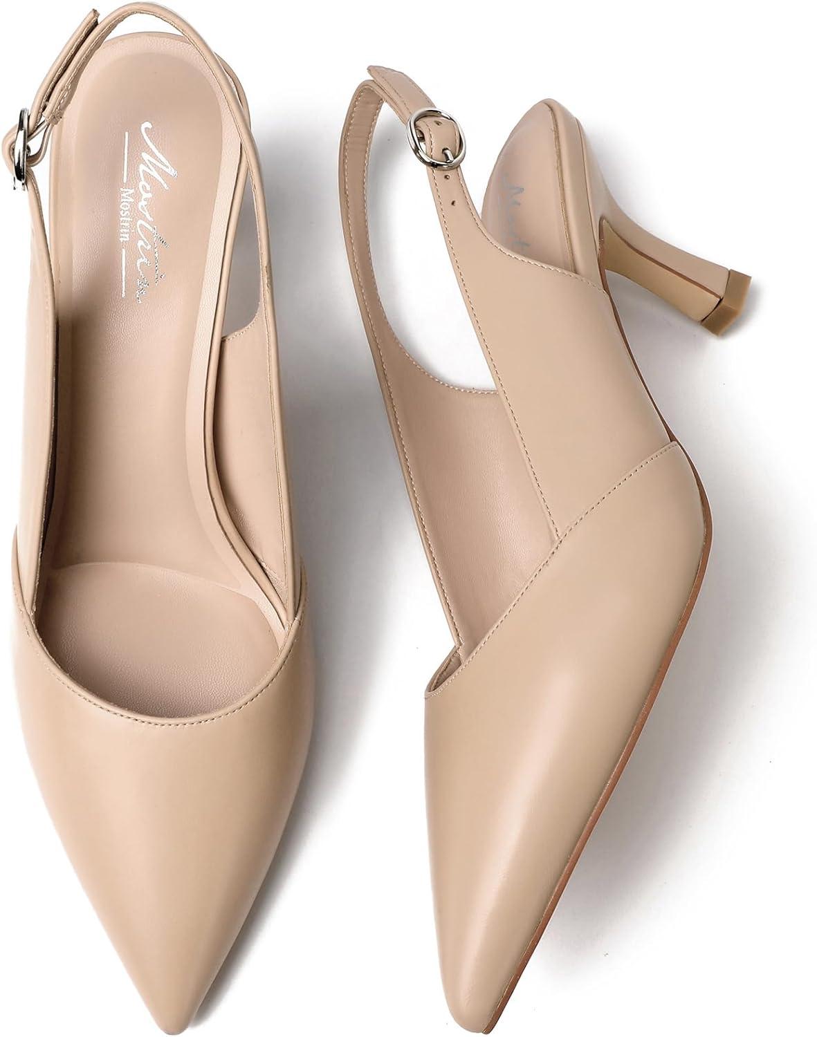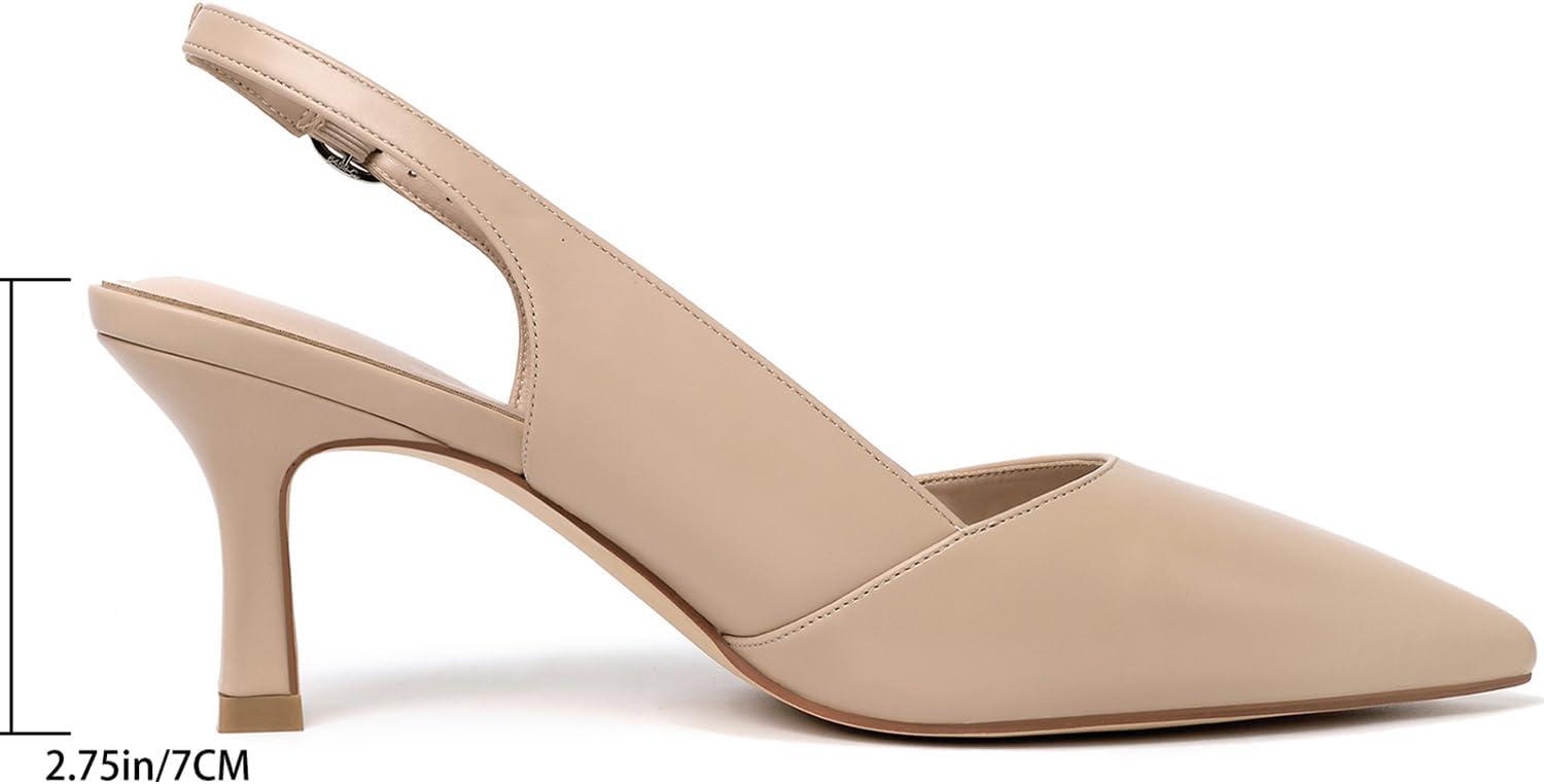 Mostrin Kitten Heels for Women Slingback Pointed Closed Toe Heels Women’s Pumps Shoes for Wedding, Party, Commuting(Nude)