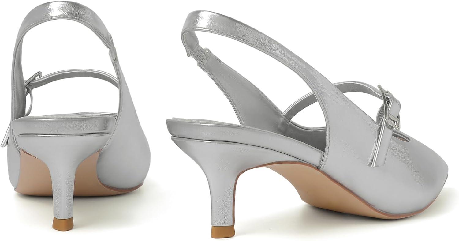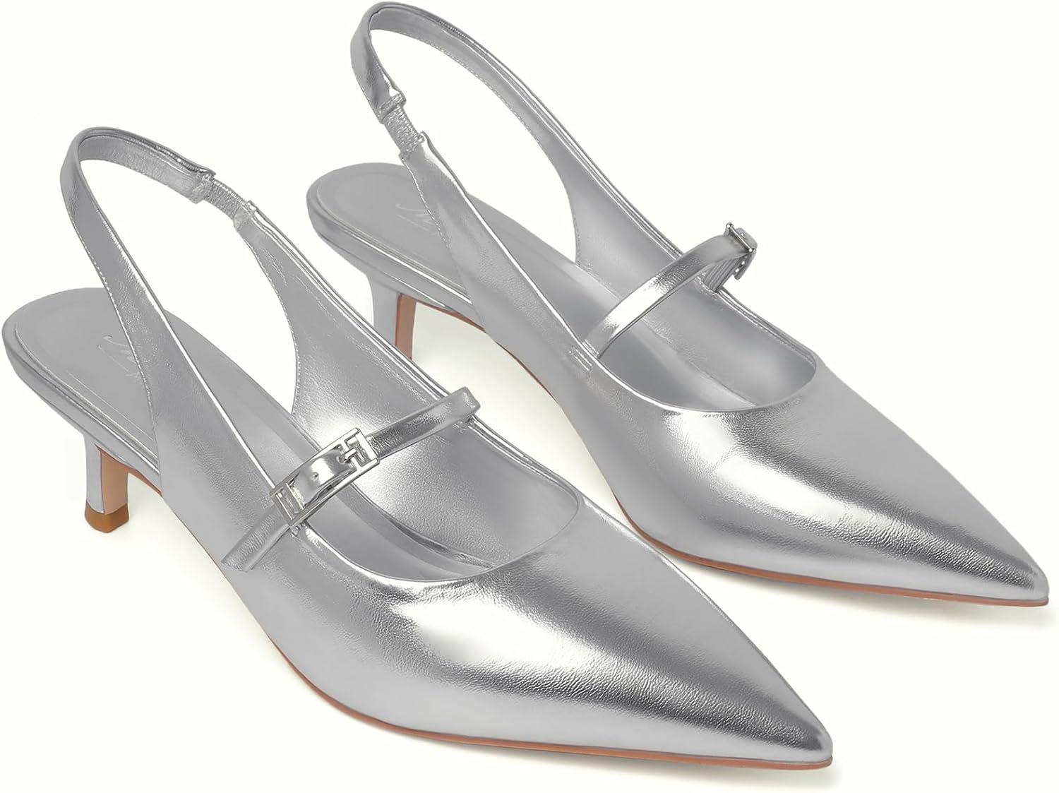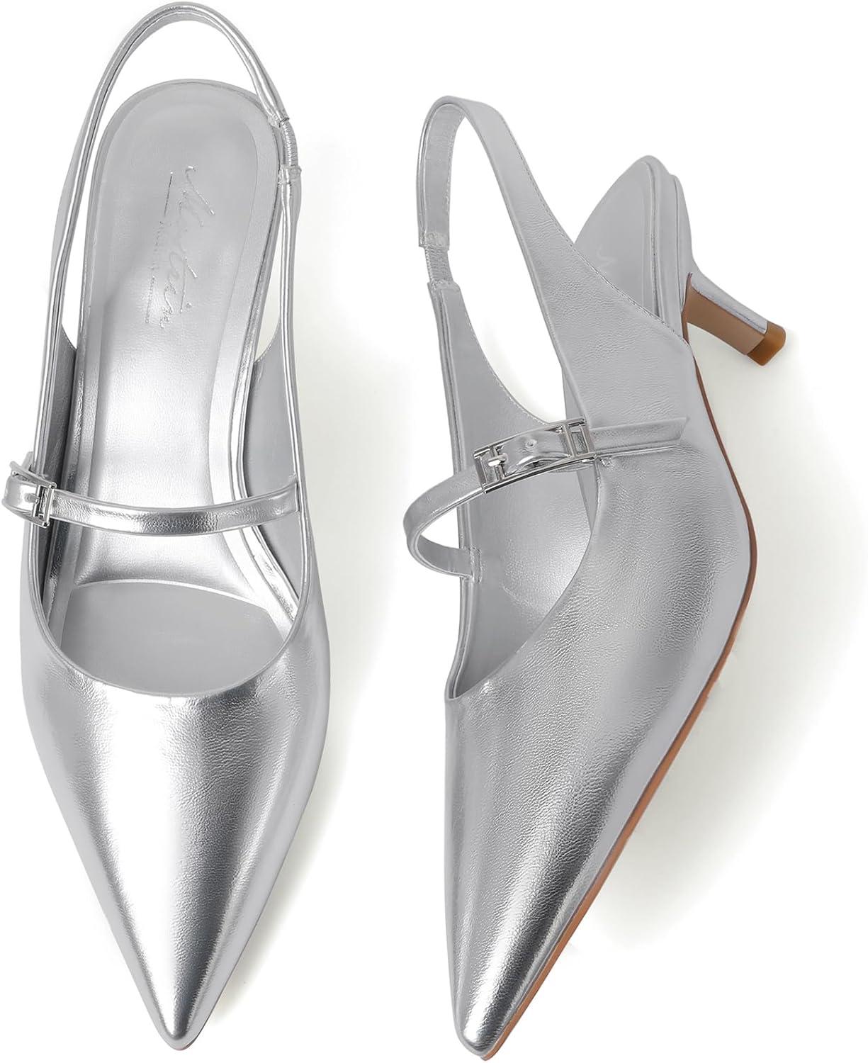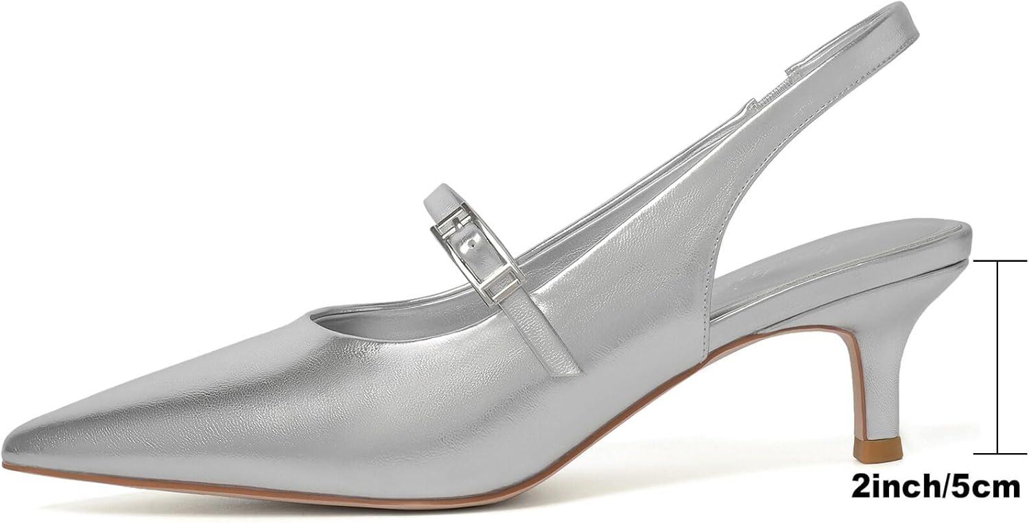 Mostrin Kitten Heels for Women Slingback Pointed Closed Toe Heels Women’s Pumps Shoes for Wedding, Party, Commuting(Silver-03)