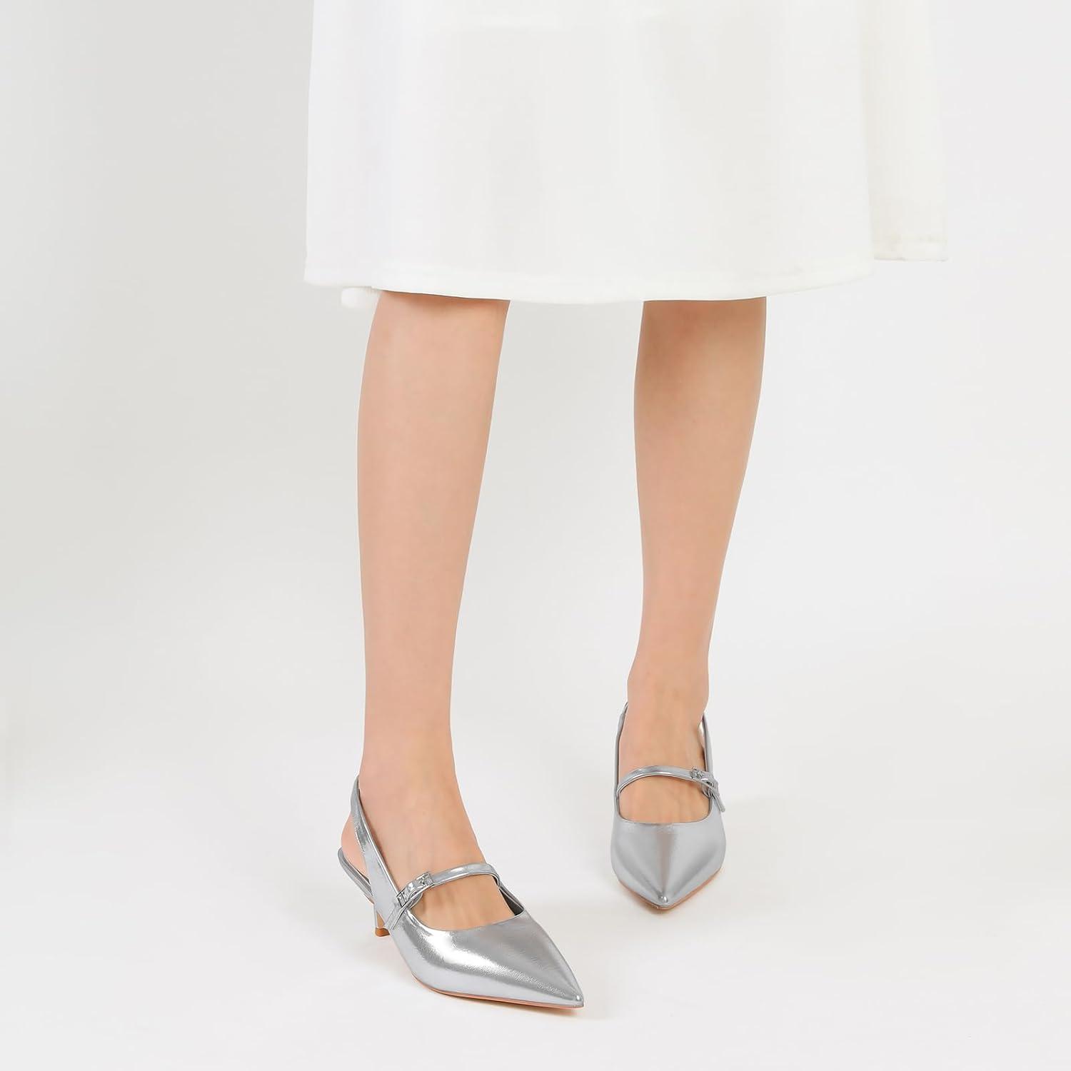 Mostrin Kitten Heels for Women Slingback Pointed Closed Toe Heels Women's Pumps Shoes for Wedding, Party, Commuting(Silver-03)