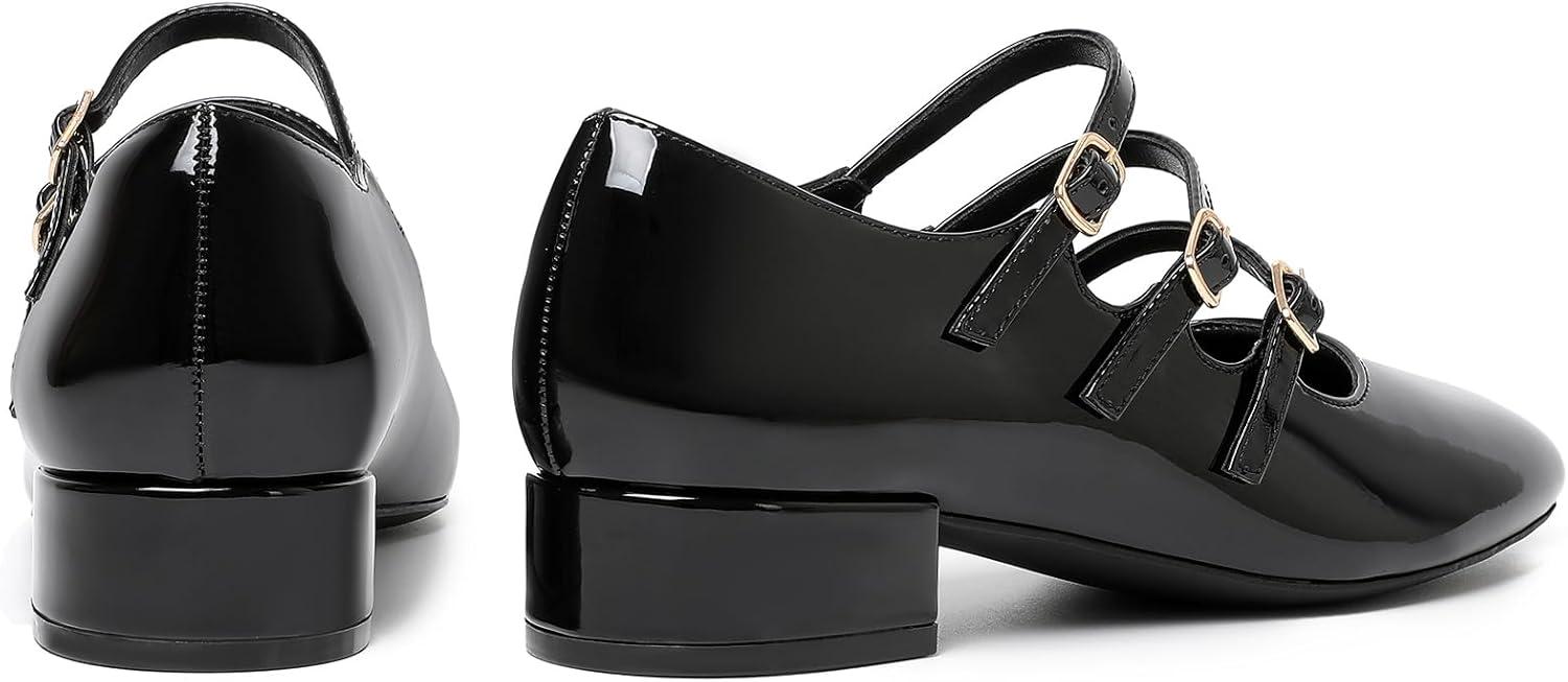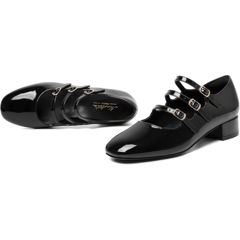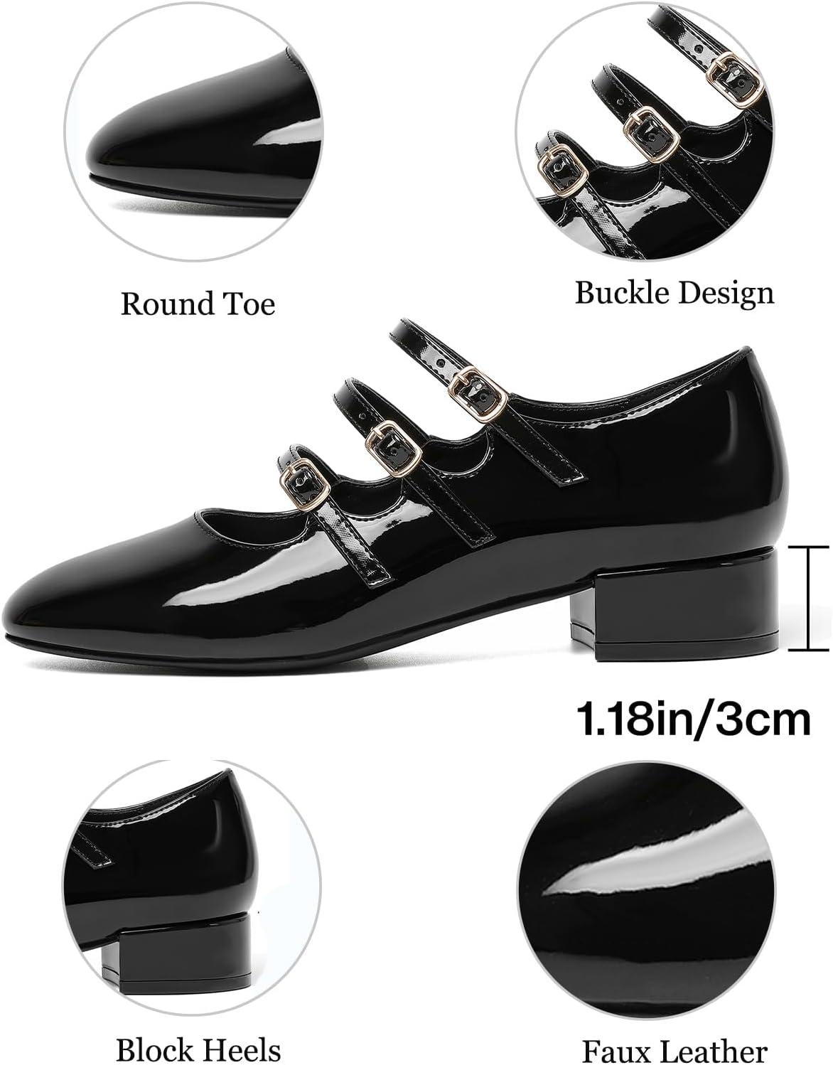 Mostrin Mary Jane Shoes Women Round Toe Dress Shoes for Women Chunky Low Heels Adjustable Buckle Strap Pumps for Work Office Wedding Party(Black)