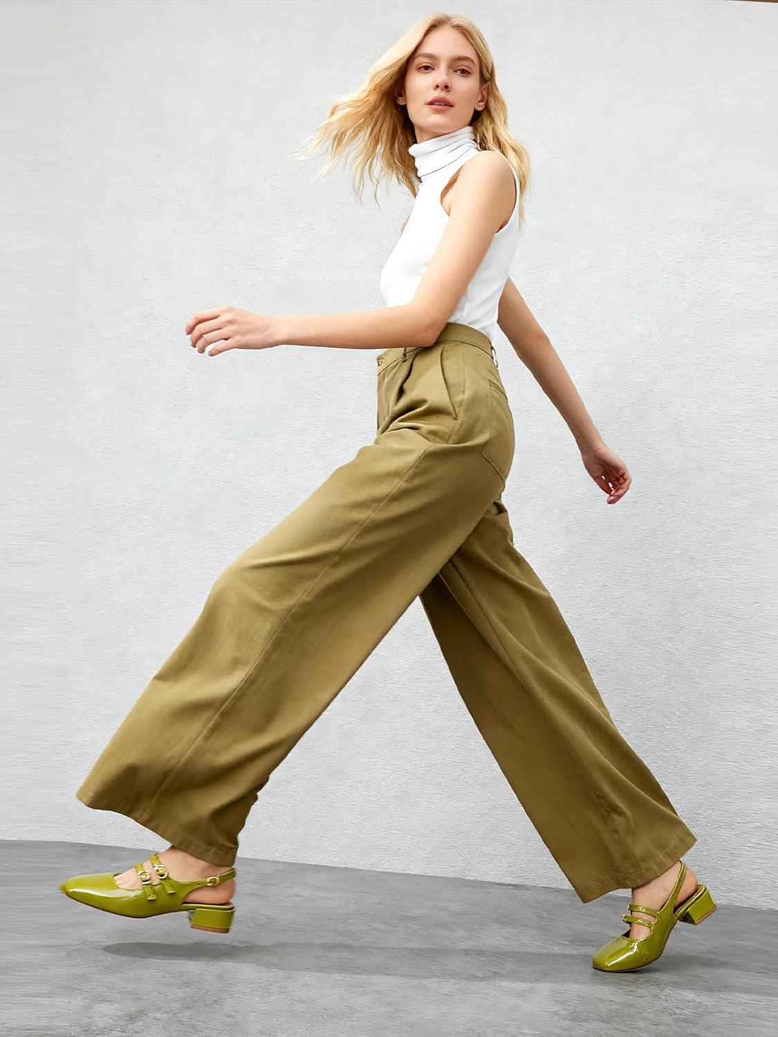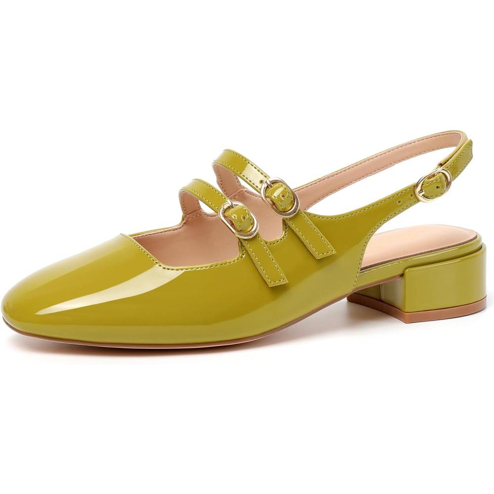 imageMostrin Mary Jane Shoes Women Slingback Chunky Low Heels for Women Closed Rounded Toe Ankle Strap Pumps Daily Wedding Party Dress ShoesGreen