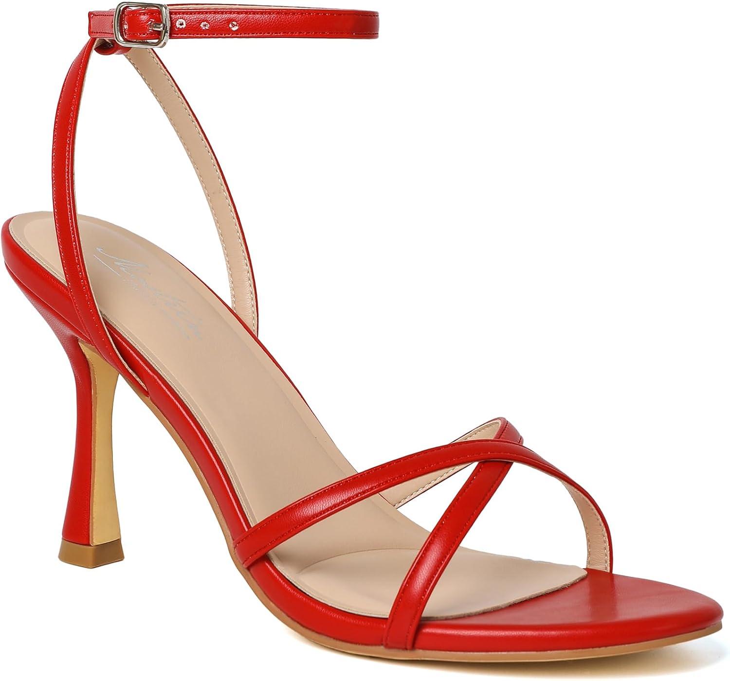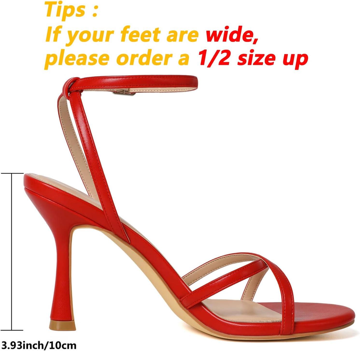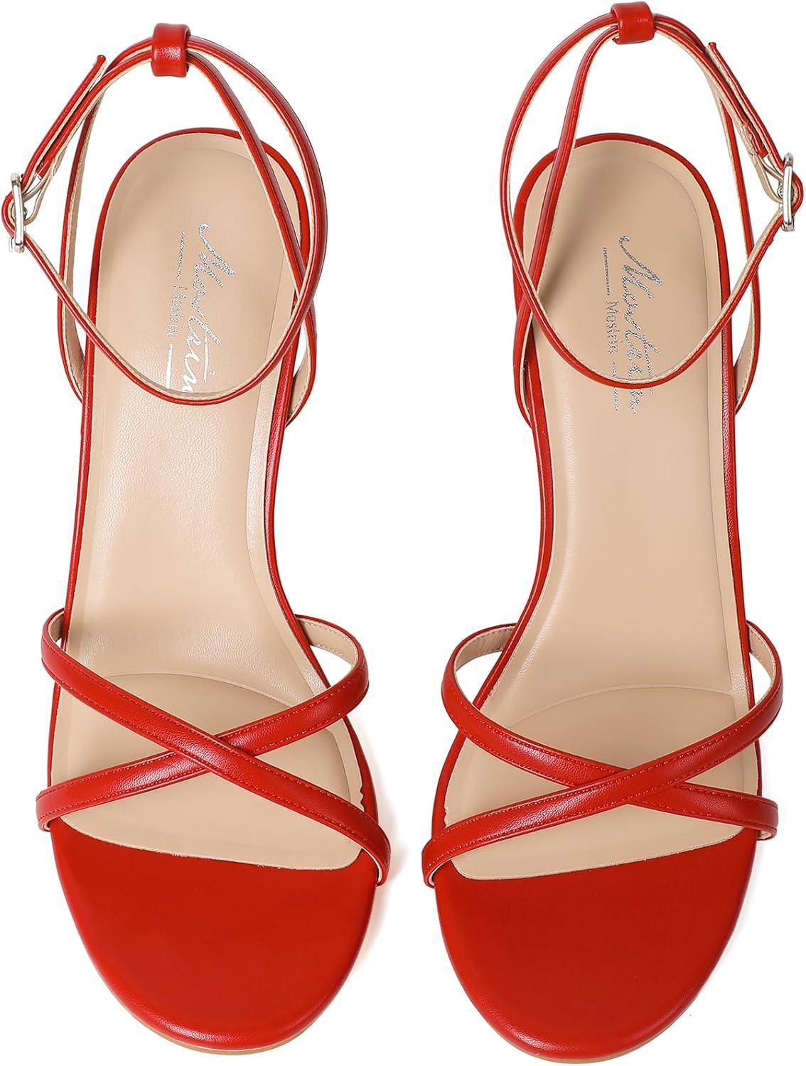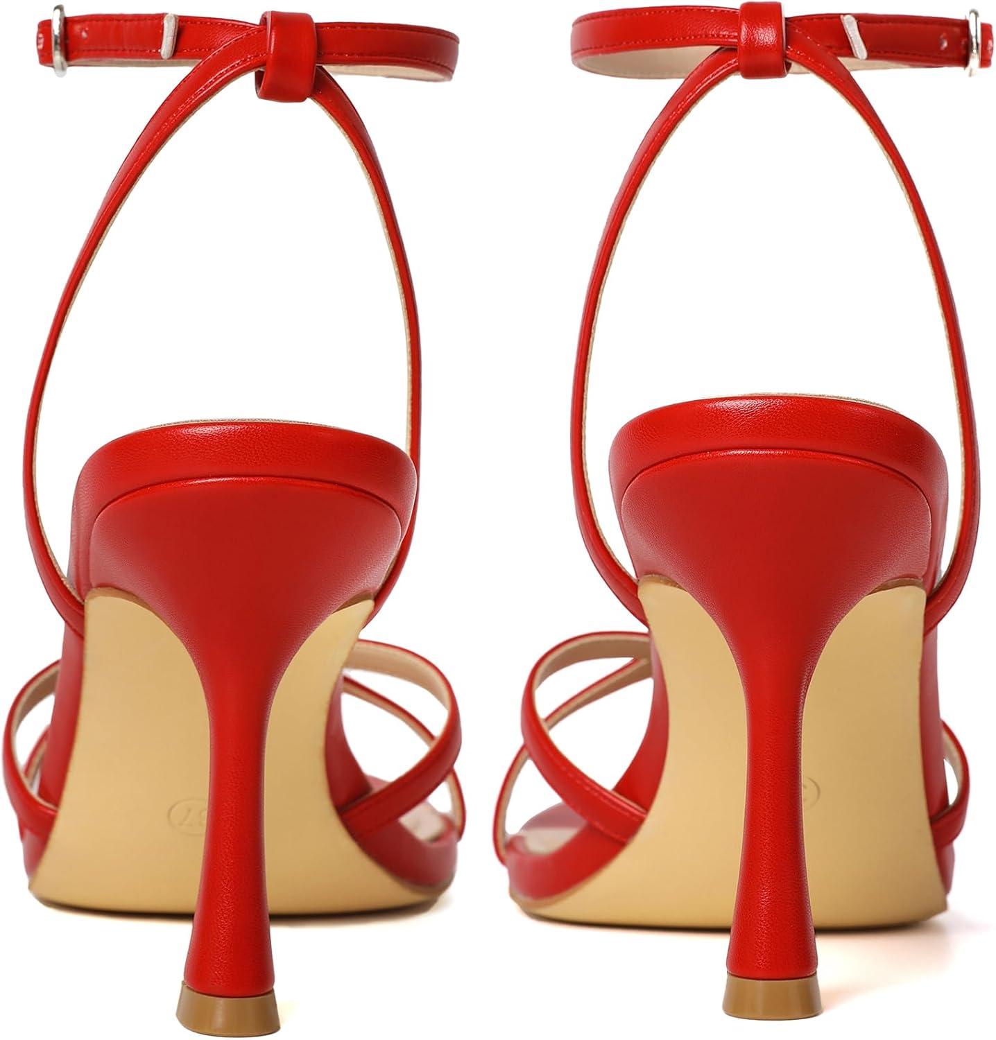 Mostrin Strappy Heels for Women Lace Up Ankle Strap Round Open Toe Stiletto High Heels Women’s Heeled Sandals for Prom, Party, Daily(Red)