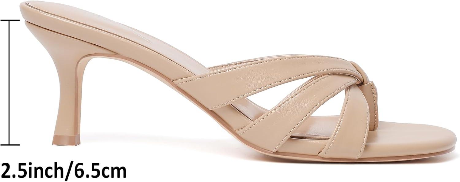 Mostrin Strappy Kitten Heels for Women Round Open Toe Flip Flops Slip On Mules Heels Fashion Thong Heeled Sandals for Party Wedding Holiday(Nude)
