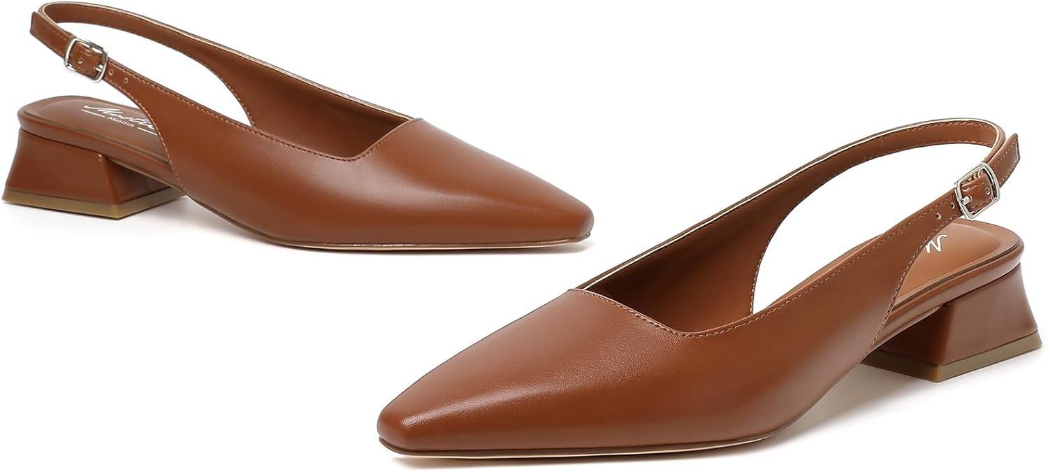 Mostrin Womens Chunky Low Heels D'Orsay Slingback Block Heel Pumps Closed Square Toe Dress Shoes for Work Office Daily Wedding(Brown #03)