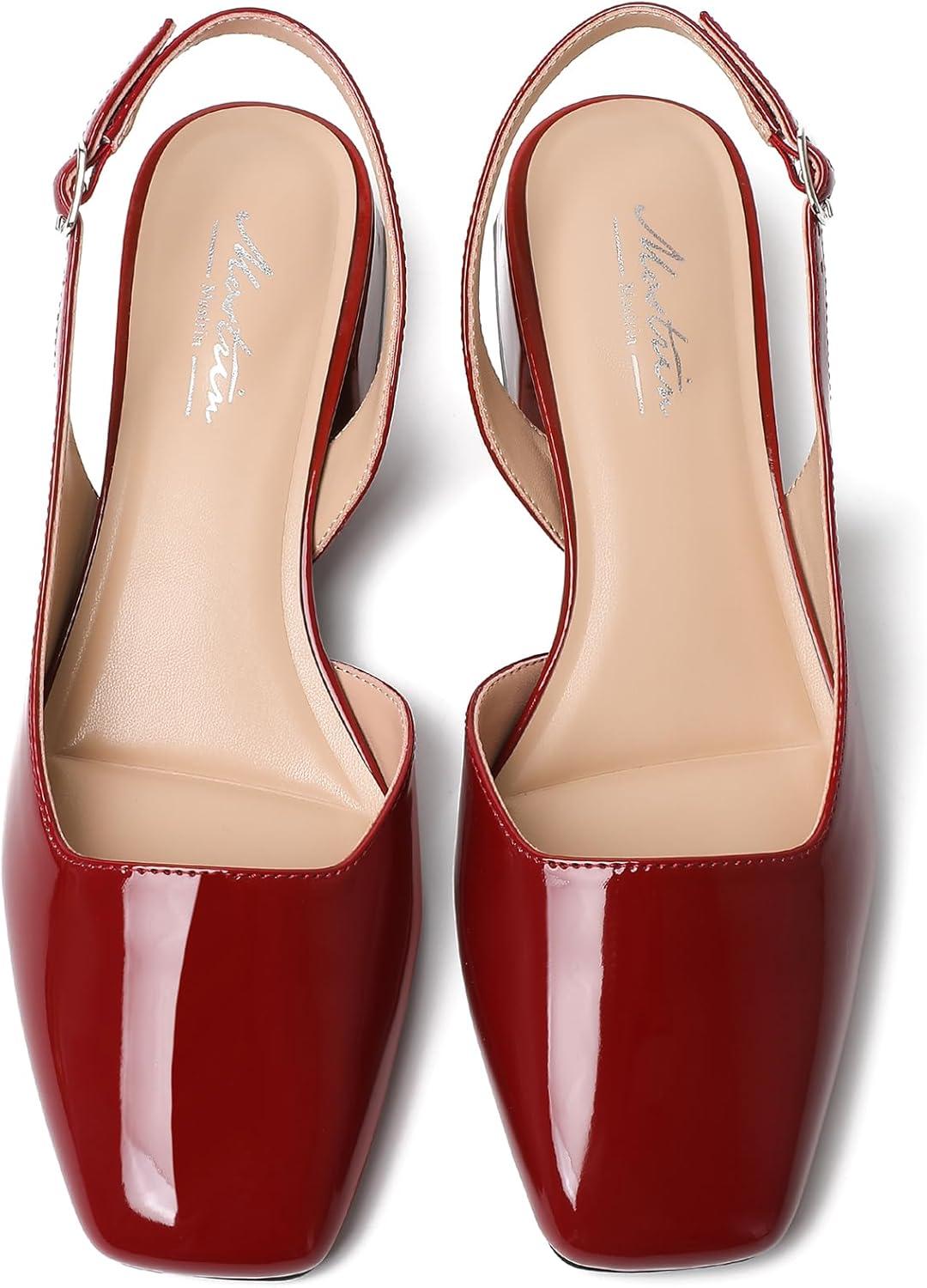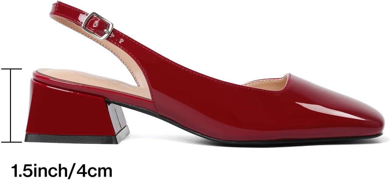 Mostrin Womens Chunky Low Heels D’Orsay Slingback Block Heel Pumps Closed Square Toe Dress Shoes for Work Office Daily Wedding(Red #02)