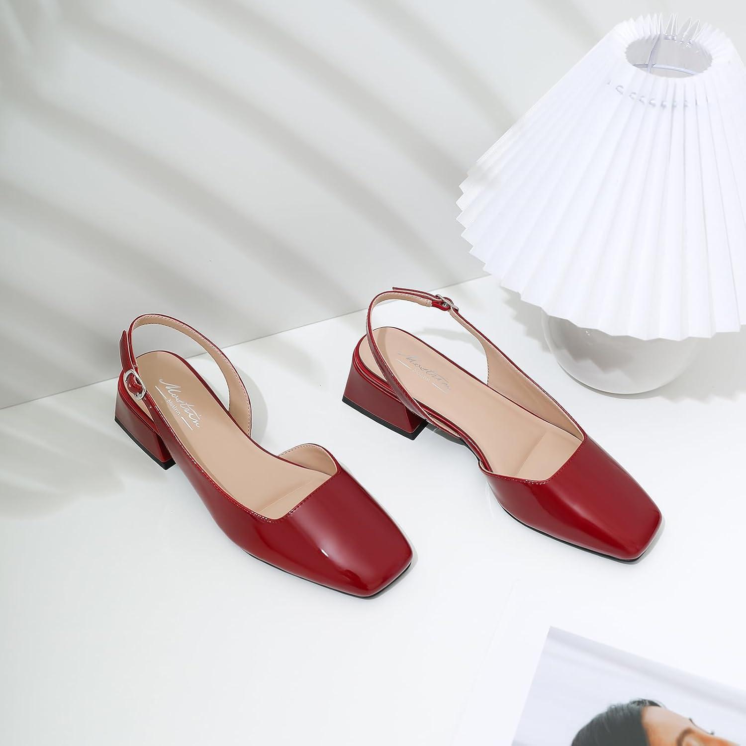 Mostrin Womens Chunky Low Heels D'Orsay Slingback Block Heel Pumps Closed Square Toe Dress Shoes for Work Office Daily Wedding(Red #02)