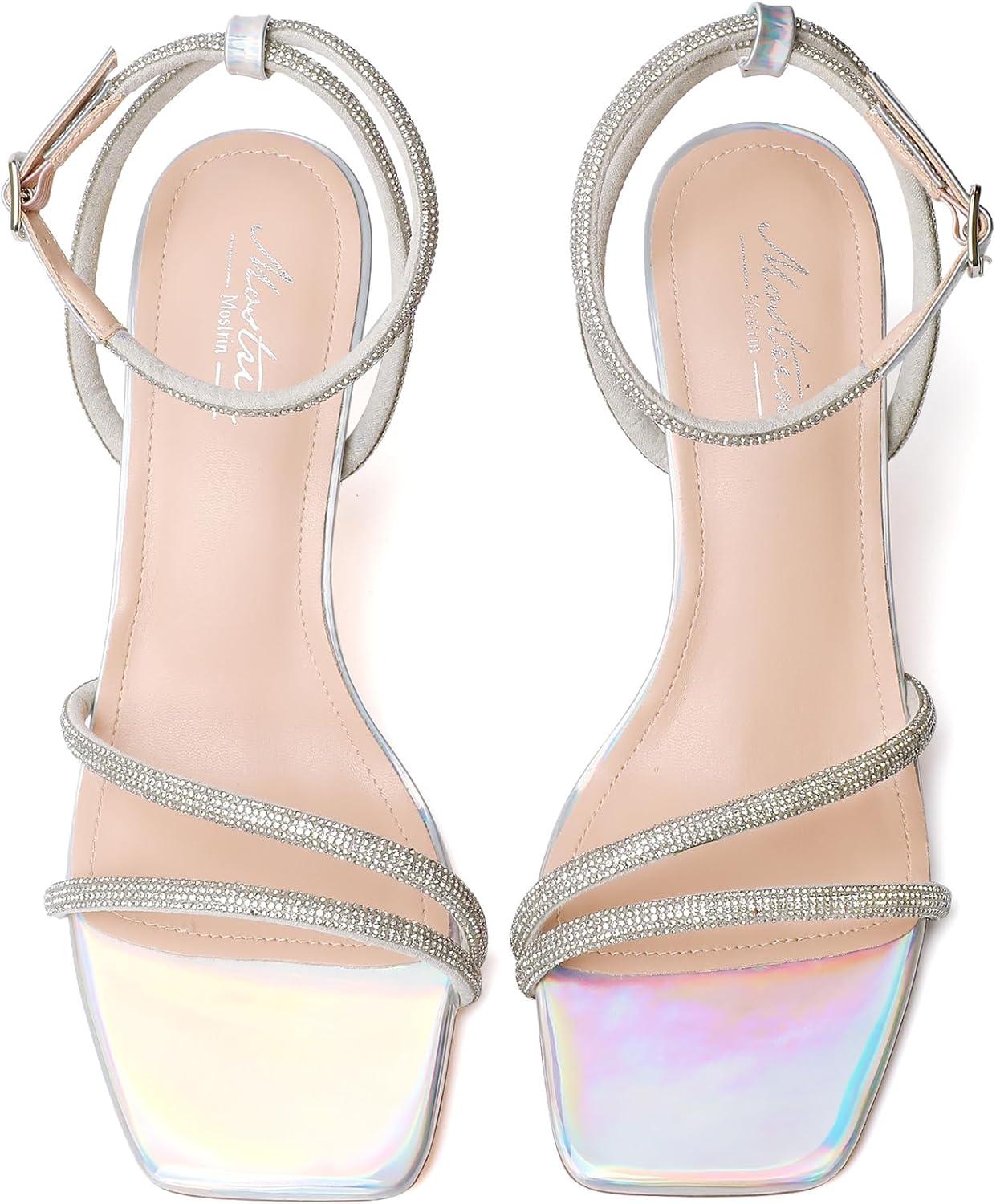imageMostrin Womens Sandals Strappy Heels for Women Ankle Strap Lace Up Square Open Toe Heels Tie Up Stiletto High Heeled Sandals for Prom Party Daily WearLh07sparkling Silver