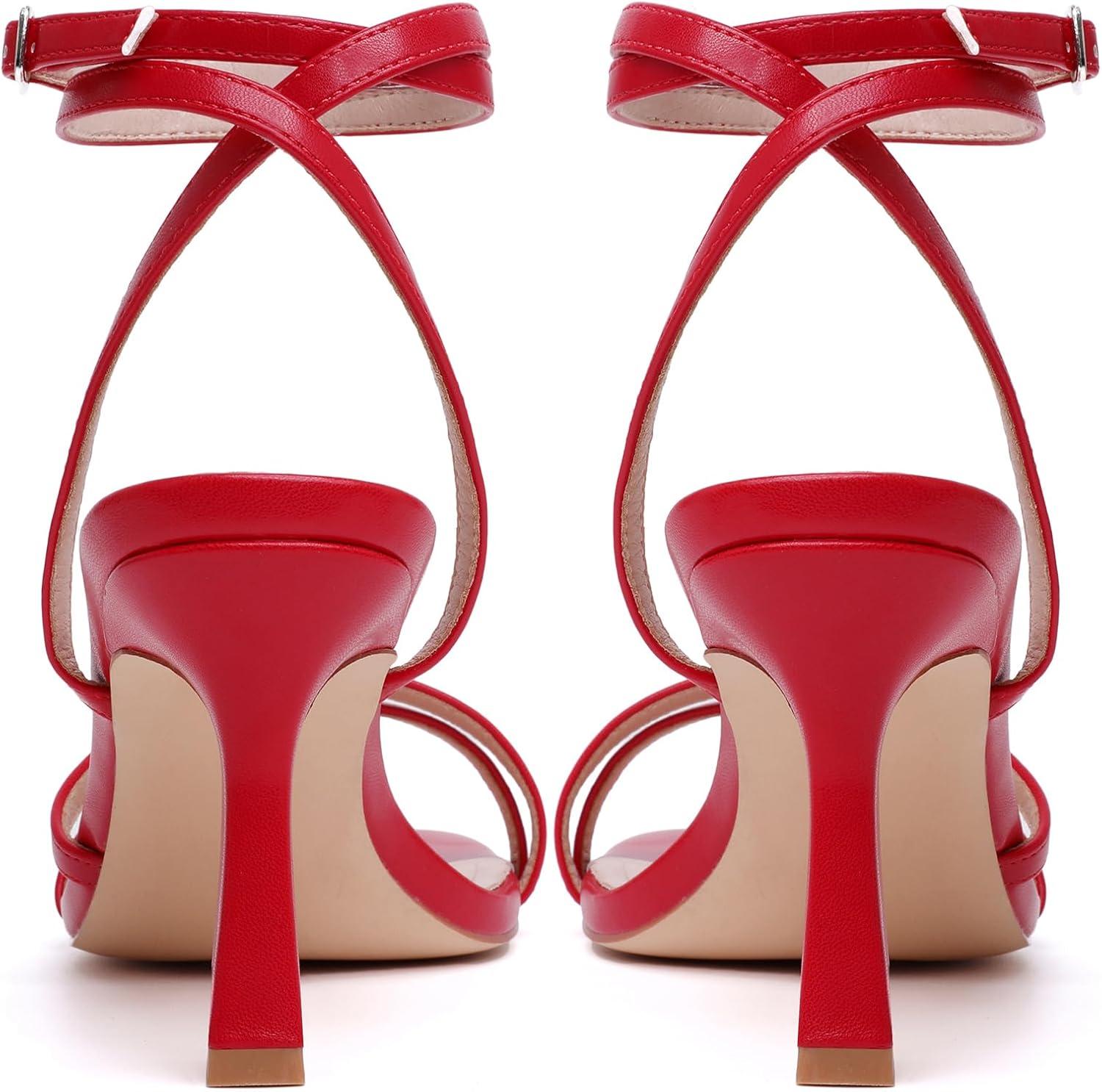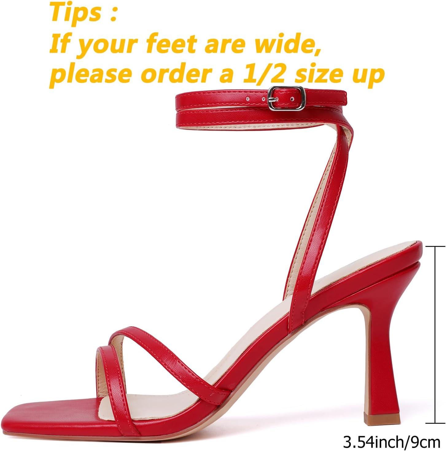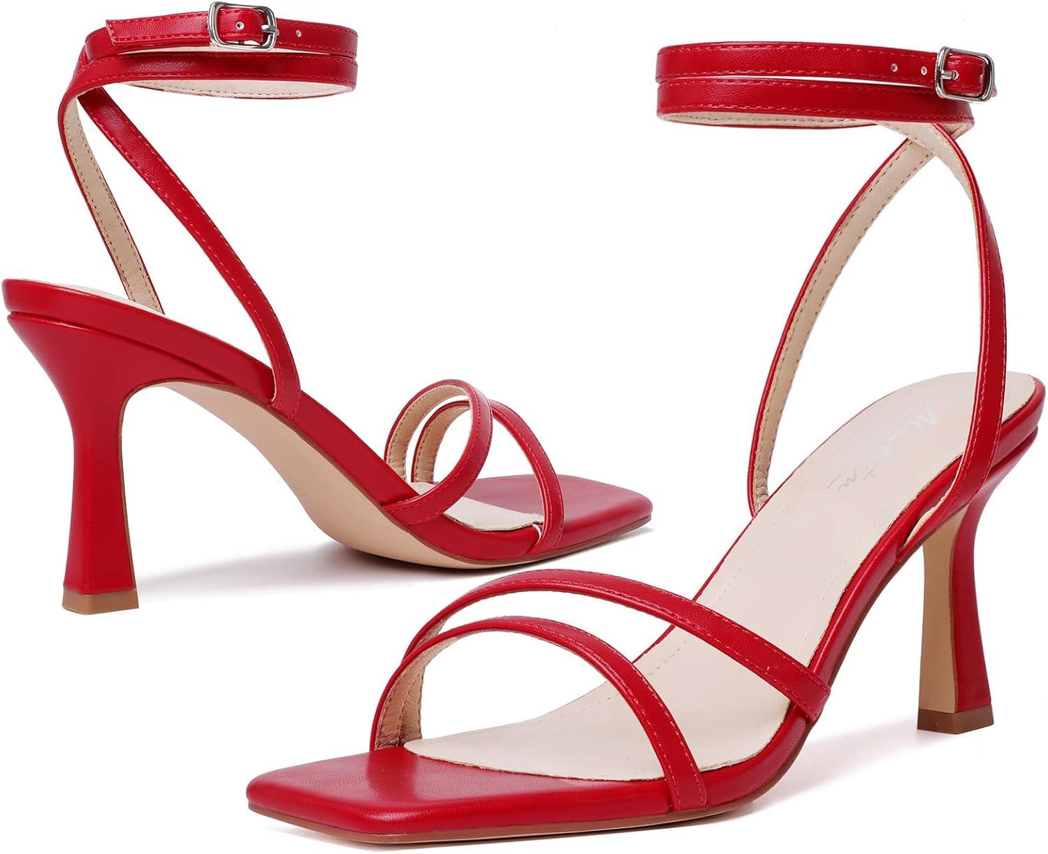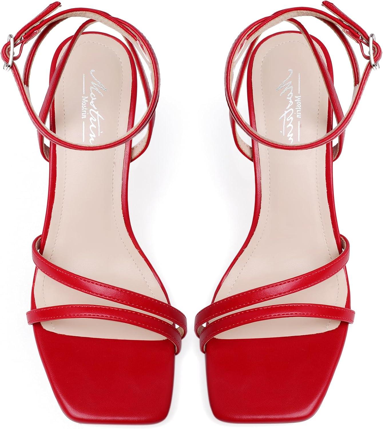 Mostrin Womens Sandals Strappy Heels for Women Ankle Strap Lace Up Square Open Toe Heels Tie Up Stiletto High Heeled Sandals for Prom, Party, Daily Wear(Red-04)